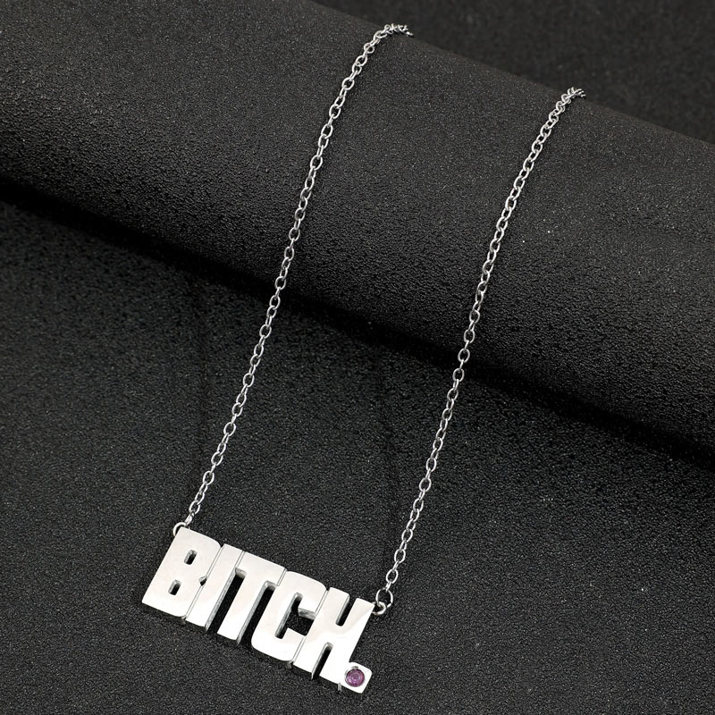 Stainless Steel Purple Crystal Bitch