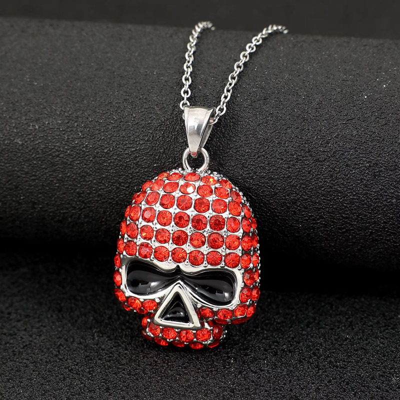 Stainless Steel Red Crystal Skull Pendant quantity